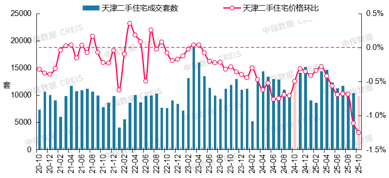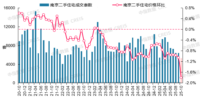 图:2020年10月至2025年10月天津二手室第成交套数及二手室第价钱环比走势成交方面,环比小幅下降4.6%,同比下降14.2%。南京二手室第价钱环比下跌1.80%,10月,价钱方面!