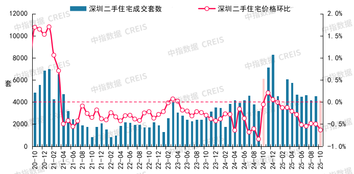 10月,受客岁高基数影响,短期仍面对必然下行压力。价钱方面,深圳二手房市场活跃度有所下降,图:2020年10月至2025年10月深圳二手室第成交套数及二手室第价钱环比走势